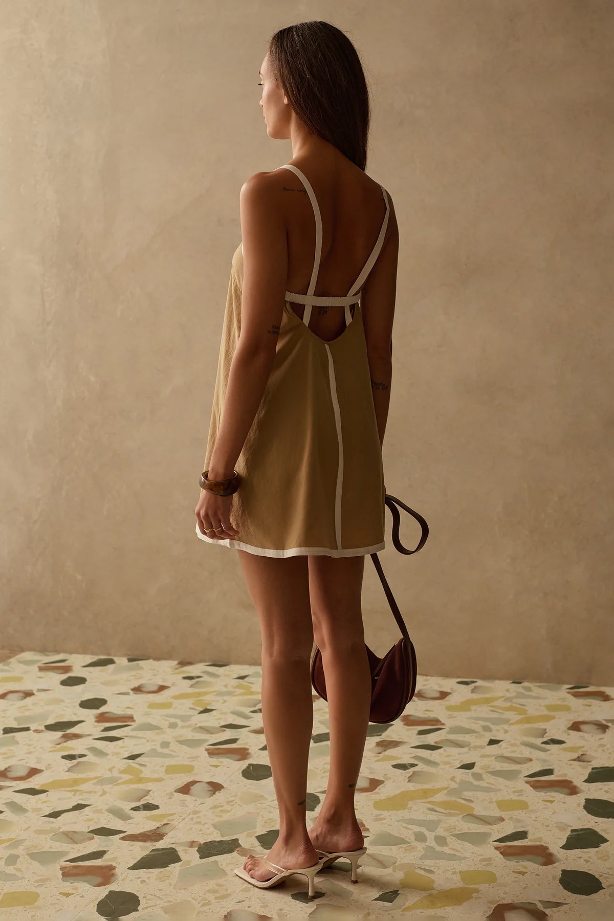 A laidback yet stylish piece, the Paige Dress combines delicate and minimal details. Featuring contrast binding that frames the silhouette of this dress and an elegant square neckline, this dress is both fun and flirty.