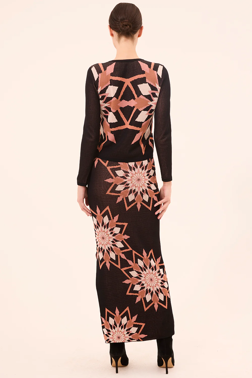 Create an accountThe Avia cardigan is crafted from a stretch jacquard knit in a Moroccan Snowflake motif. Designed with a fitted, slightly cropped silhouette, it fastens at the front with tonal enamel buttons for a refined finish.