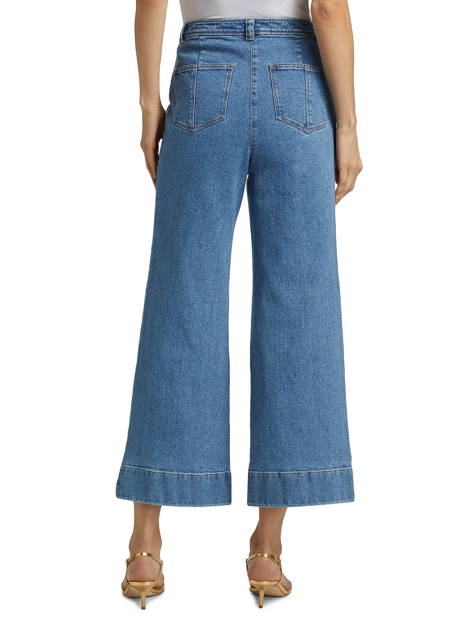Create an accountCrafted of stretch denim, Cinq à Sept's Benji wide-leg pants showcase a mid-rise fit, patch pockets, and a button fly.