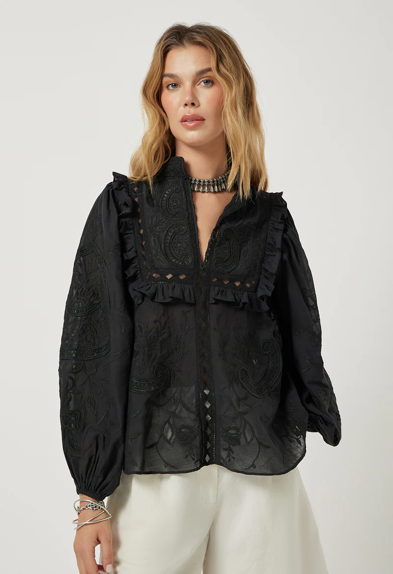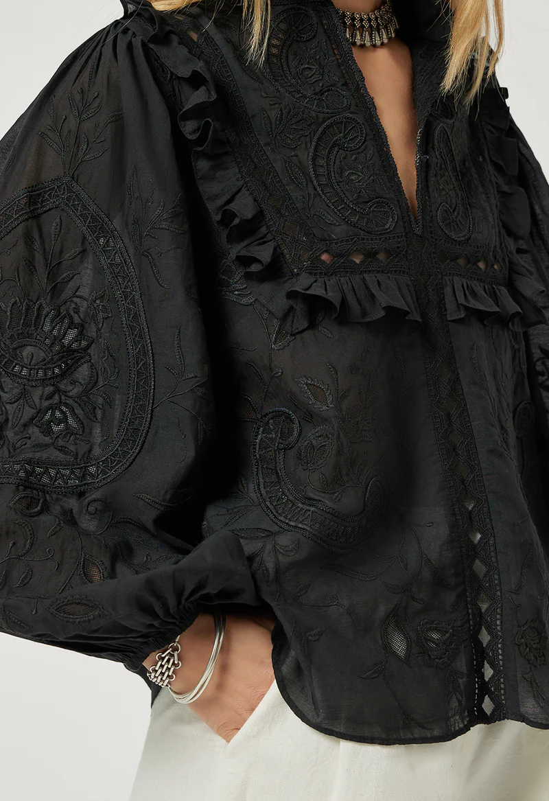 Create an accountThe CHASKA TOP blends artisanal craftsmanship with effortless style. Made from a soft mix of viscose and cotton suchi voile, this straight-fit top features a collar with a plunging neckline.