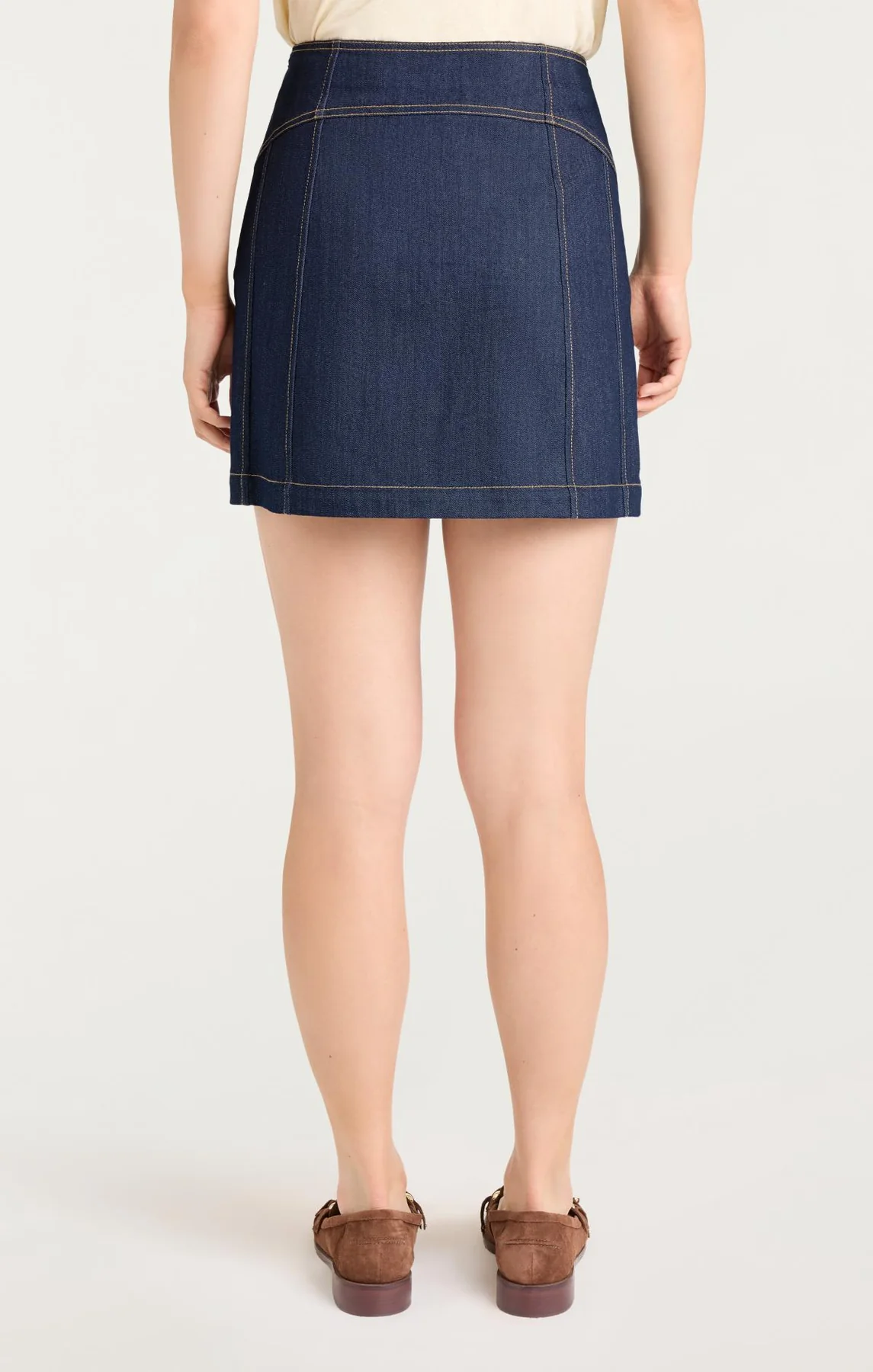 Create an accountUpdate your wardrobe with the Denim Claudia Skirt, featuring gold buttons down the front and contrast stitch detailing. Its timeless design pairs seamlessly with graphic tees or blouses to create an easy casual look.