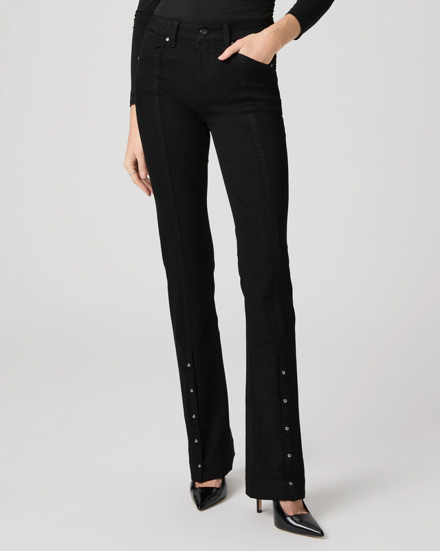 Create an accountA flattering high-rise style with a fitted silhouette through the hips and thighs, and a slim bootcut from the knee down. In a black shadow wash with front slits and snaps, this pair is cut from TRANSCEND, the original high-stretch fabric.
