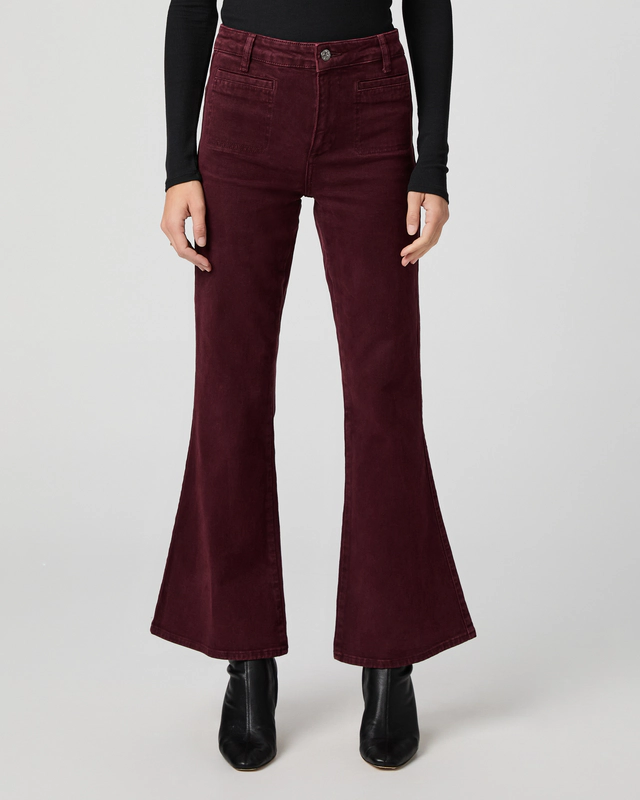 Create an accountThe Marlow Skimmer is designed to graze the top of the foot with a flare. This pair is crafted from comfort stretch denim in a vintage-inspired dark oxblood red hue with welt stitch-through pockets and a clean hem.