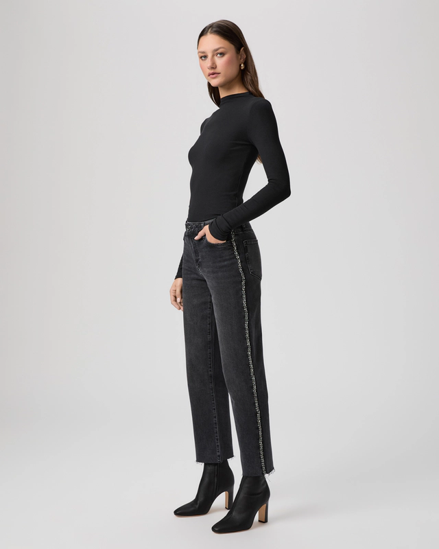 Create an accountThe Mason Ankle is our mid-rise straight leg with an ankle length inseam. In a washed black with a gunmetal embellished side seam detail, this pair is crafted from heritage-inspired denim with a soft hand-feel and a hint of stretch.