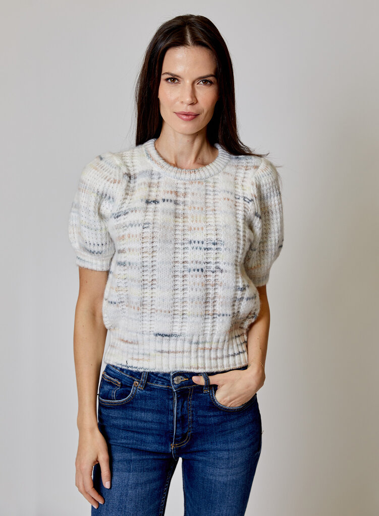 Create an accountMarbled short sleeve sweater.