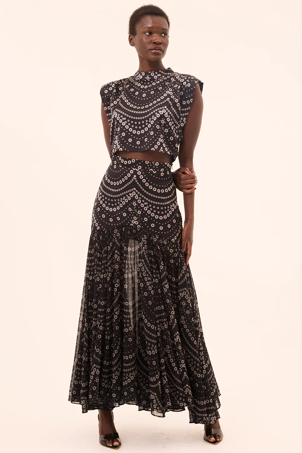 Create an accountStun in our new Yara maxi skirt. This chic drop-waist silhouette features a fitted satin waist that extends to the mid-thigh, where a curved seam meets a flowing, double-lined chiffon skirt in our eye-catching Stranded Pearl satin.